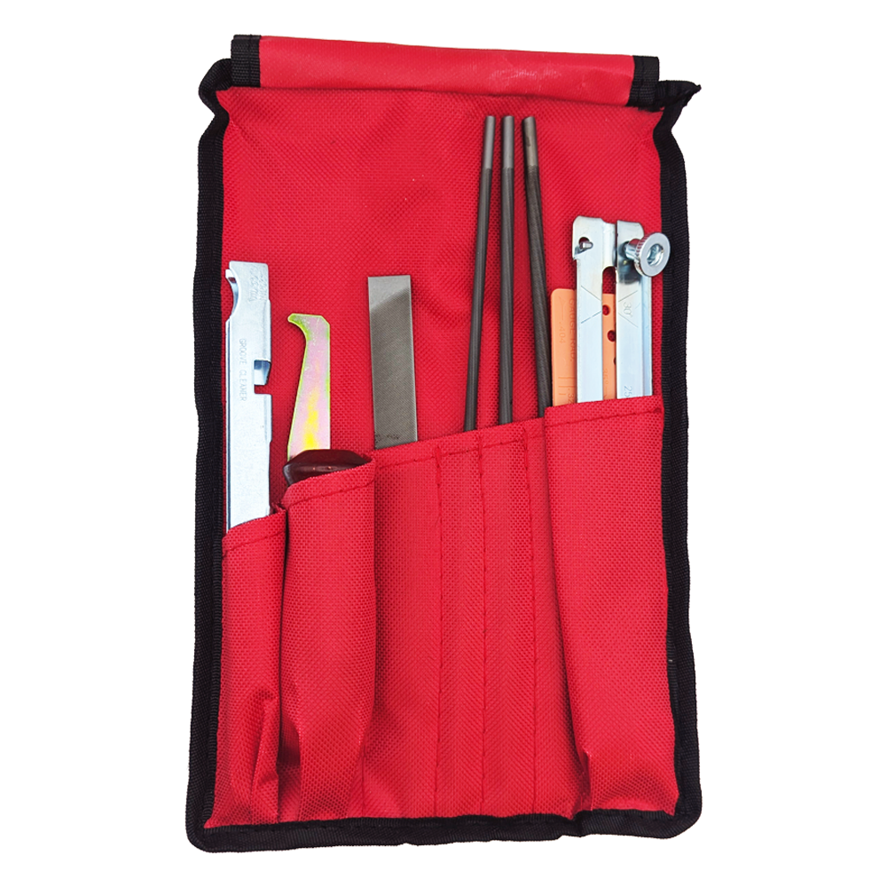 Never get caught out by a dull chain with this complete roll-up chainsaw file chain sharpening kit, ideal for working on-the-go. This handy kit includes all the essential tools you need to sharpen your chainsaw chain efficiently.