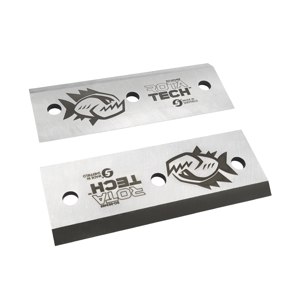 Enhance the cutting performance of your 7HP JCB wood chipper with this pair of precision-engineered Rotatech Chipper Blades.