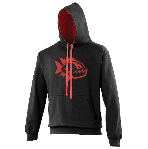 - Double fabric hood with contrast inner and contrast flat lace draw cord