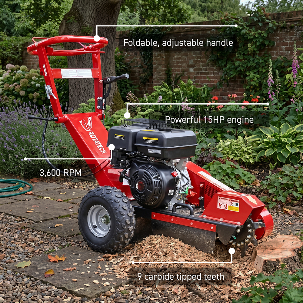 - Cuts through stumps and roots quickly and efficiently